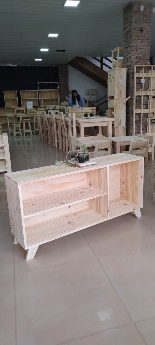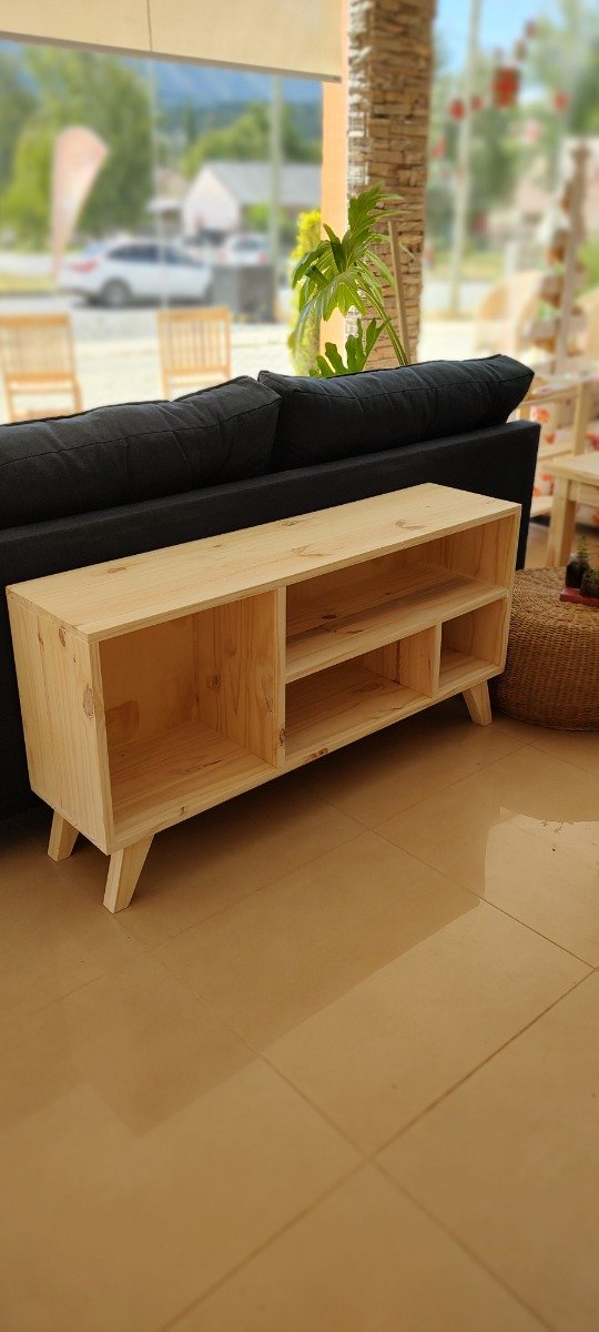 Este mueble de TV, ideal para espacios modernos y minimalistas, combina la calidez de la madera de pino con el diseño simple y funcional del estilo nórdico. Sus líneas limpias y la ausencia de puertas crean una sensación de amplitud, mientras que sus patas cónicas le dan un toque de ligereza y elegancia.