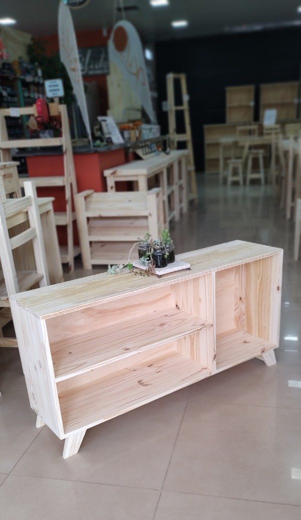 Construido íntegramente en madera de pino macizo, es una pieza duradera y resistente. El acabado natural resalta las vetas únicas de la madera, aportando un carácter orgánico a tu sala de estar.
