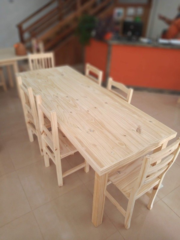 Si buscas una mesa funcional, resistente y con un diseño limpio que se adapte a cualquier espacio, nuestra mesa de pino rectangular es la elección ideal. Fabricada con madera de pino maciza y detalles cuidados, te acompañará por muchos años.