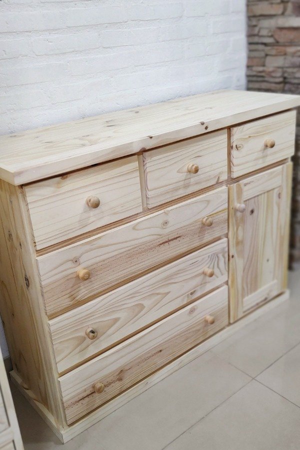 Resolve la organización de tu hogar con nuestra cómoda grande de pino macizo. Diseñada para ofrecer una gran capacidad de almacenamiento, este mueble destaca por su robustez y su acabado natural que aporta calidez a cualquier ambiente. Es la pieza ideal para quienes buscan una solución práctica y duradera sin renunciar al estilo.