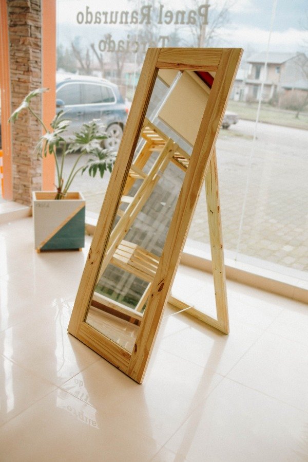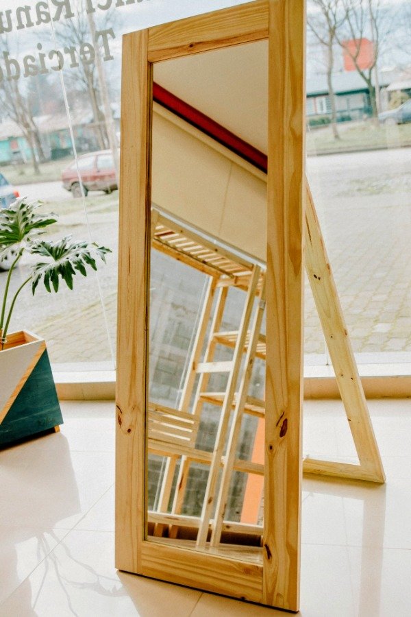 Elegante y funcional, este marco de espejo de pie está construido en madera de pino natural, aportando calidez y un estilo moderno a cualquier espacio. Su diseño robusto y sencillo lo hace ideal para dormitorios, vestidores, recibidores o locales comerciales.