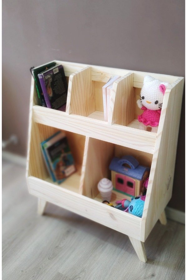 Versatilidad: Además de libros, la biblioteca puede usarse para almacenar juguetes, materiales de arte o cualquier otro objeto que los niños quieran tener a mano.