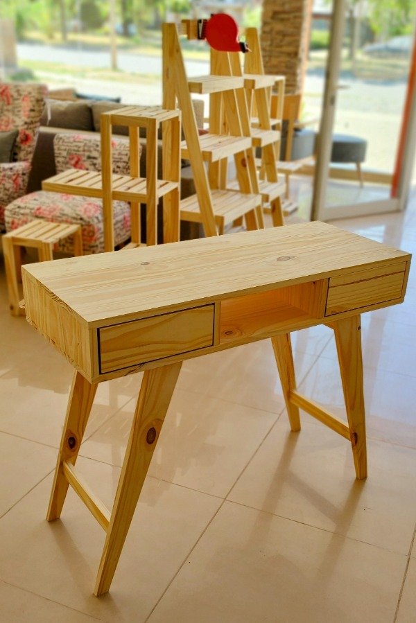 Dale un toque de frescura y minimalismo a tu espacio de trabajo con nuestro escritorio escandinavo. Este mueble, fabricado en pino macizo, captura la esencia del diseño nórdico: líneas limpias, funcionalidad y ligereza visual.