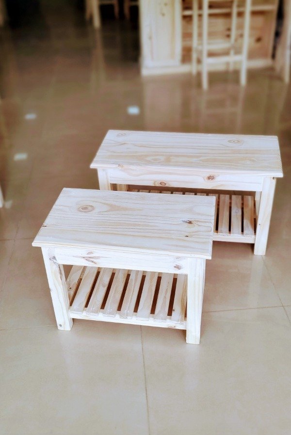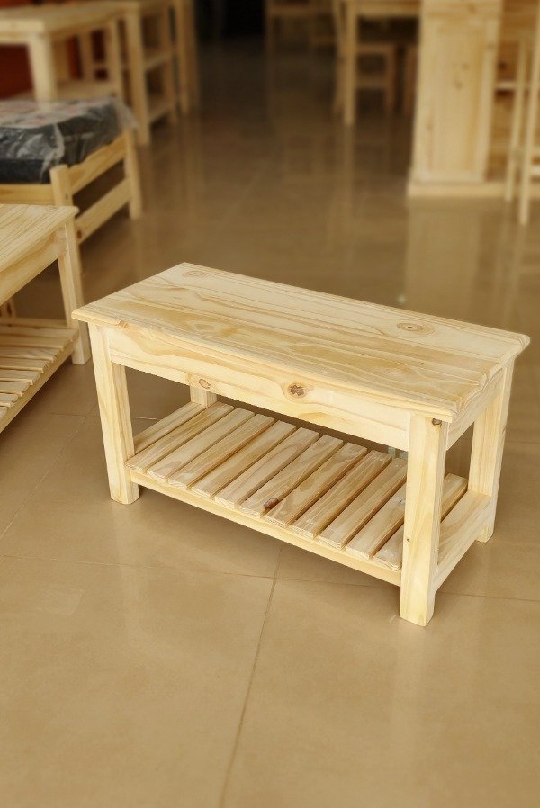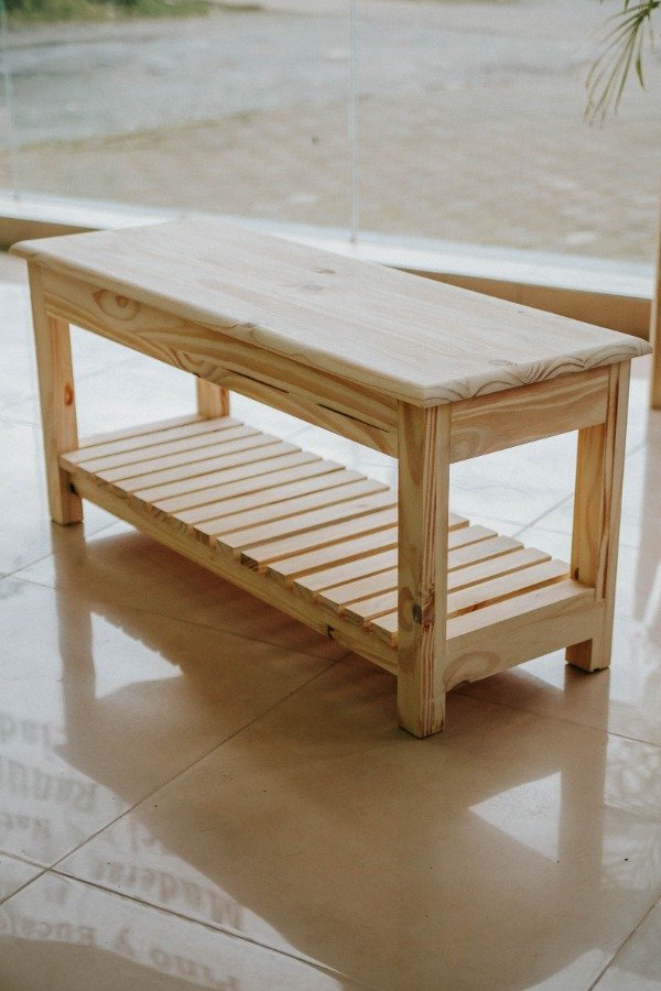 Este banco de pino combina la calidez de la madera natural con un diseño moderno y funcional. Su estilo sencillo y elegante se adapta a diversos espacios, aportando un toque de encanto natural y practicidad. El estante deck inferior ofrece un espacio de almacenamiento adicional, ideal para optimizar el orden en tu hogar.