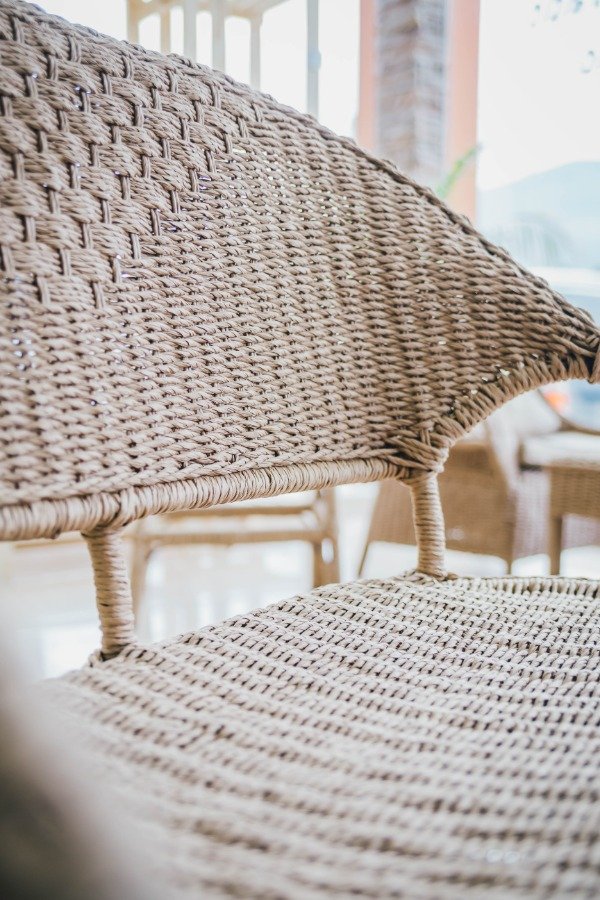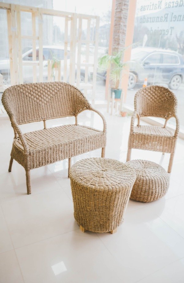 La estructura de madera y caña le otorga una solidez excepcional, mientras que el tejido en kraft no solo es visualmente atractivo, sino que también ofrece una comodidad inigualable. Gracias a su tamaño compacto, este sillón se adapta sin esfuerzo a cualquier rincón, desde el living hasta galerías o balcones.