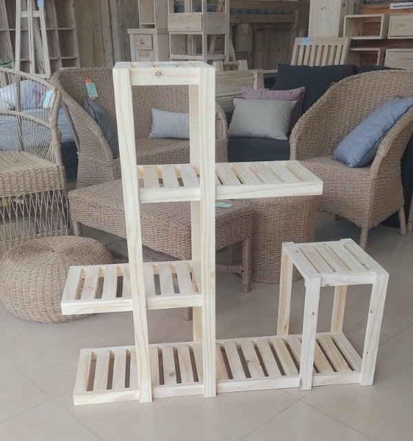Práctico y decorativo, este organizador está construido en pino natural con estantes tipo deck, lo que le aporta resistencia y un estilo moderno. Su diseño liviano y versátil lo convierte en una excelente opción para realzar cualquier ambiente, ya sea en interiores o exteriores.